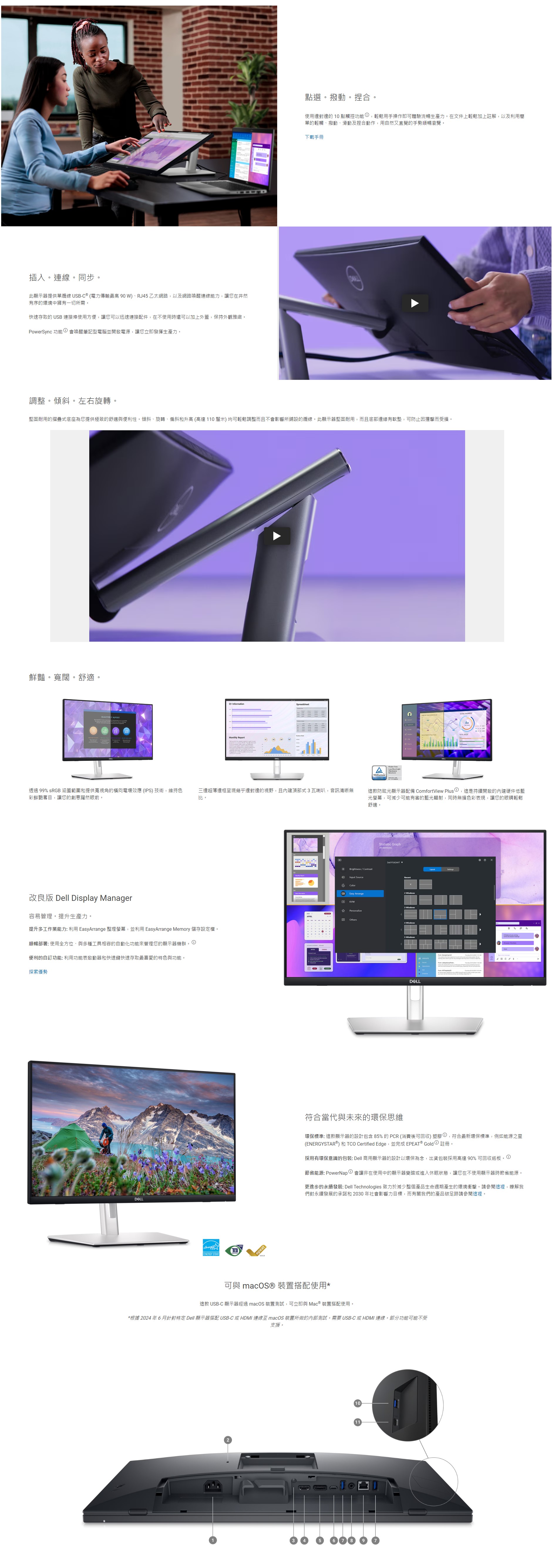 LED邊緣照明系統, 無閃爍技術, Dell Easy Arrange, 低藍光技術, 3面無邊框, Dell ComfortView Plus