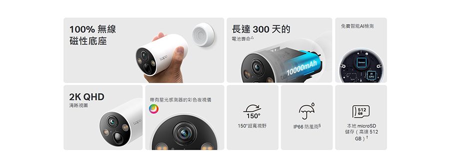 - 支援 Tapo 太陽能板:使用 Tapo A200 太陽能板讓您的相機全天候運作。
