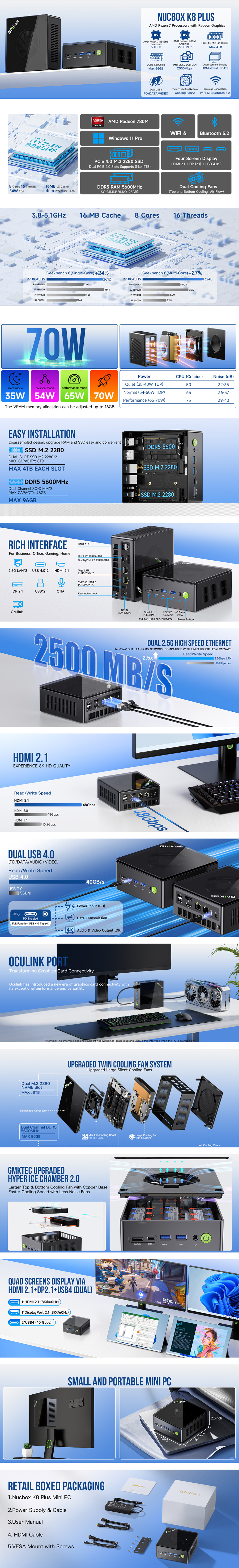 GMKtec NucBox K8 Plus (AMD Ryzen 7 8845HS + AMD Radeon 780M + 32GB RAM + 1TB SSD + Windows 11 Pro) 迷