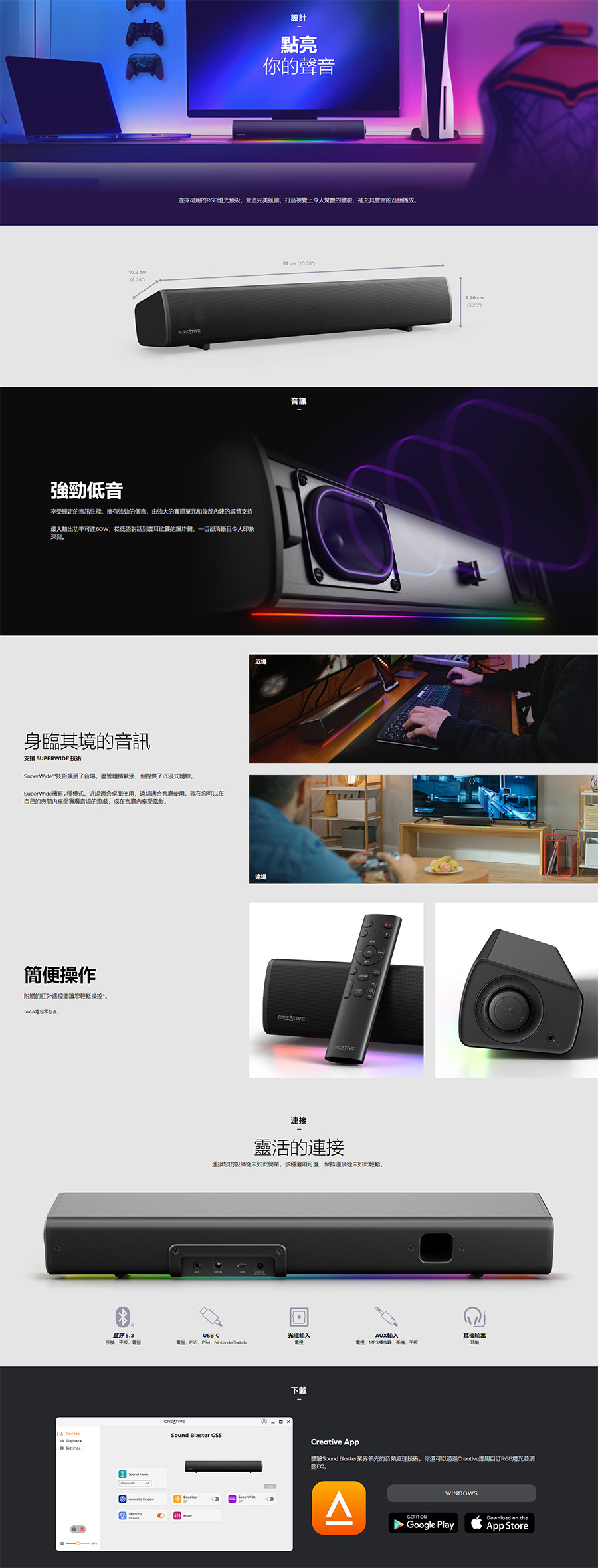 具備SuperWide™技術的多功能RGB遊戲音響條