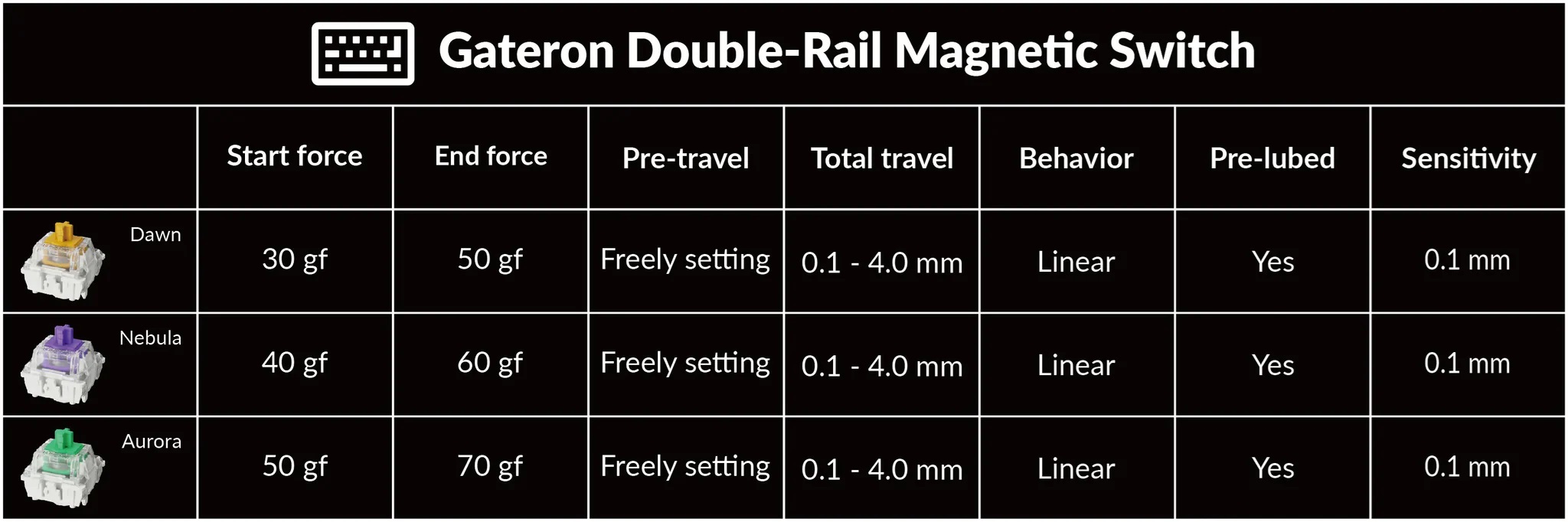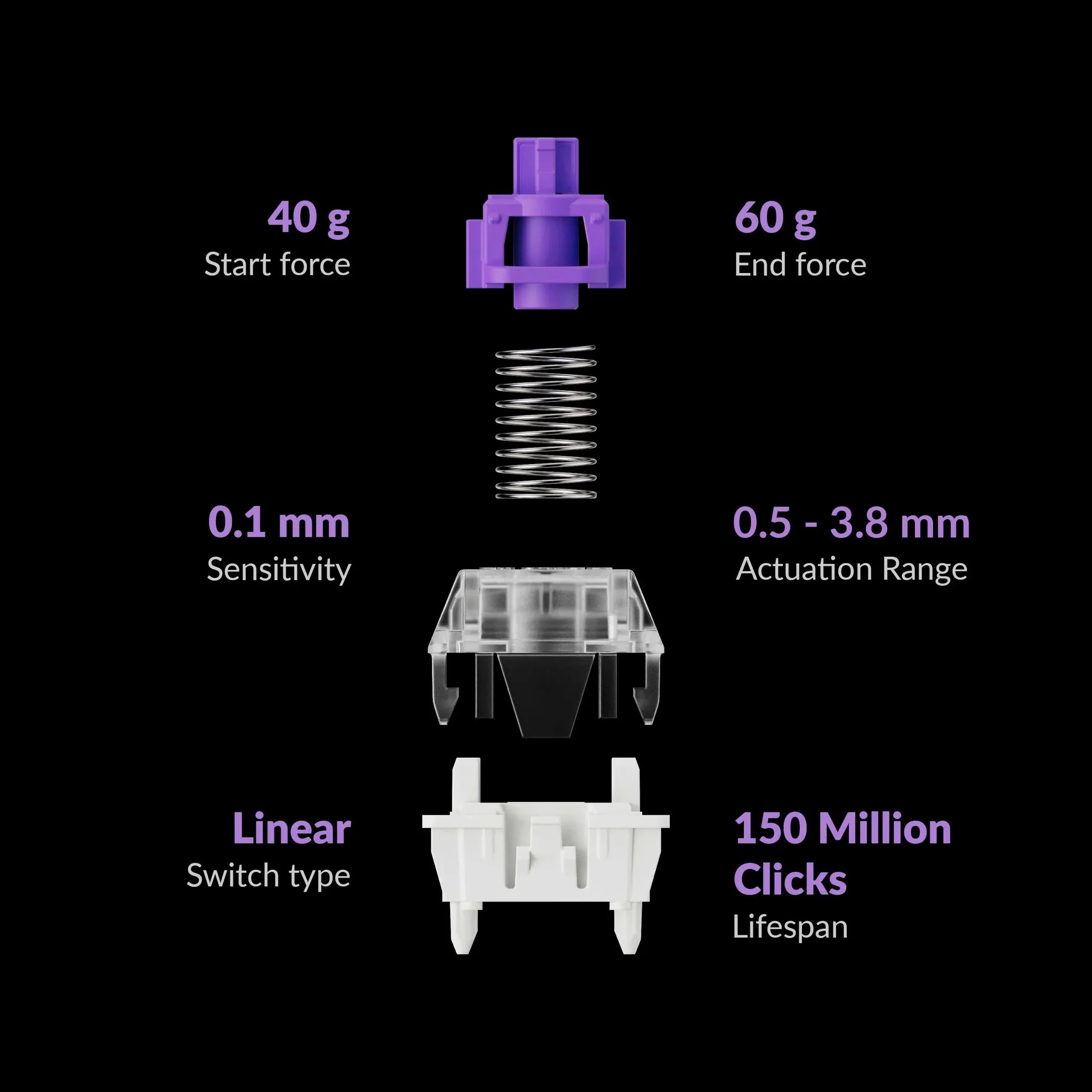 Installed with an optimal magnetic sensor with a sensitivity of only 0.1 mm, it offers more previous feedback. You can customize actuation points and assign multiple actions to a single key based on the travel depth you personalized, enhancing gameplay and providing a customized typing sensation.