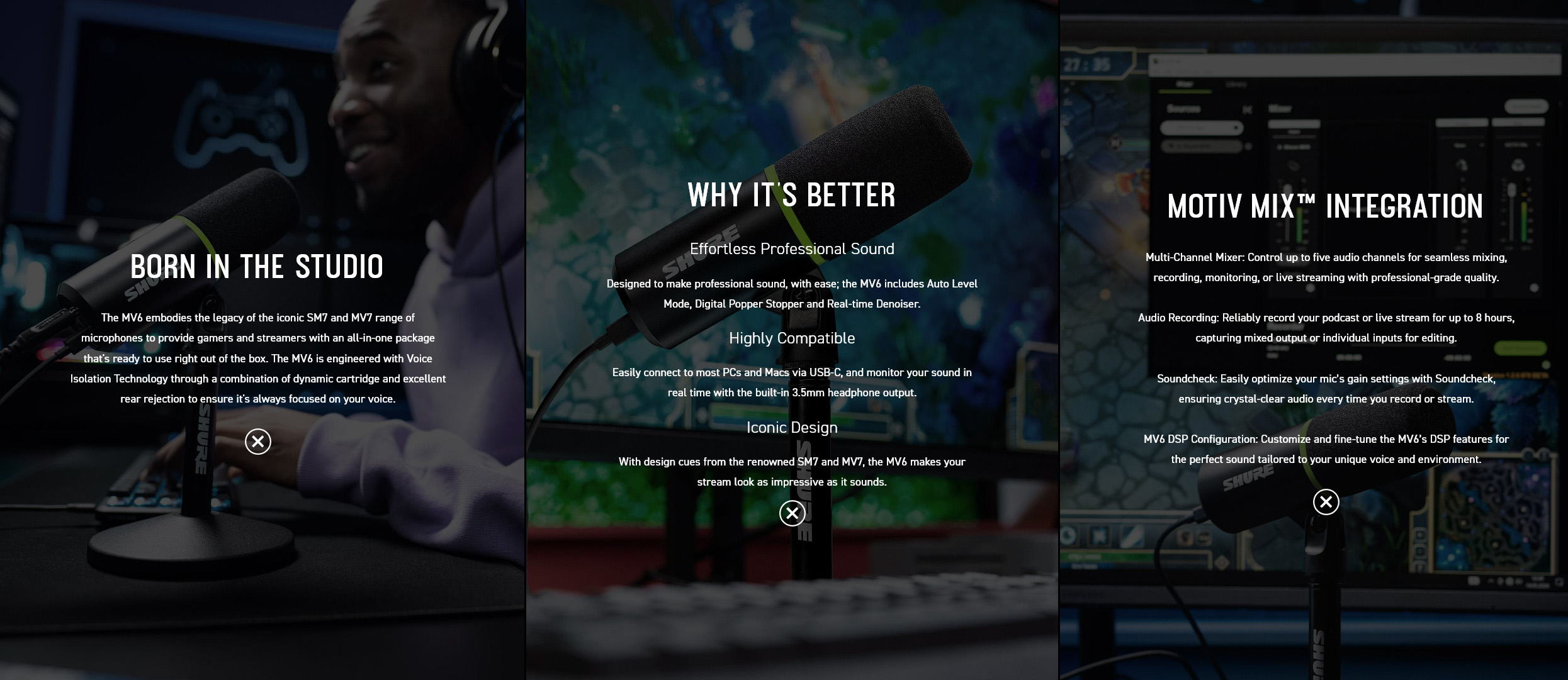 The MV6 features a design inspired by the iconic SM7 and MV7 range, trusted by professional vocalists, podcasters, and streamers for decades, giving you a professional look on camera and a microphone you can rely on.