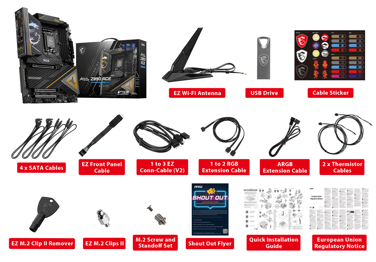 - EZ DIY: EZ PCIe Release, EZ Magnetic M.2 Shield Frozr II, EZ M.2 Clip II and EZ Antenna.