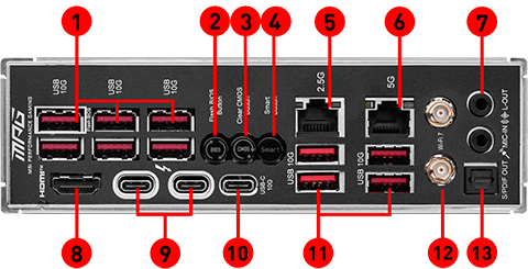 10x USB 10Gbps Type A (Rear)