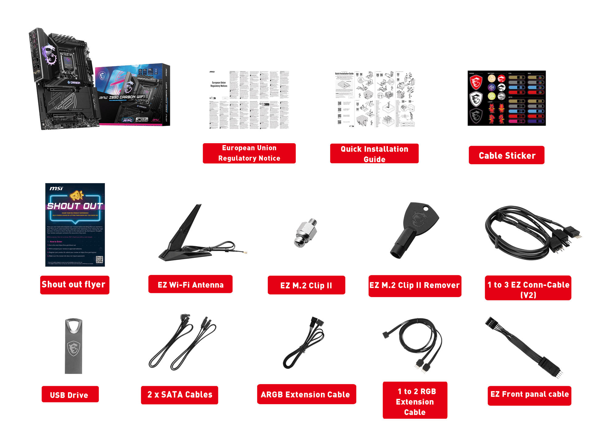 - EZ DIY: EZ PCIe Release, EZ M.2 Shield Frozr II, EZ M.2 Clip II and EZ Antenna