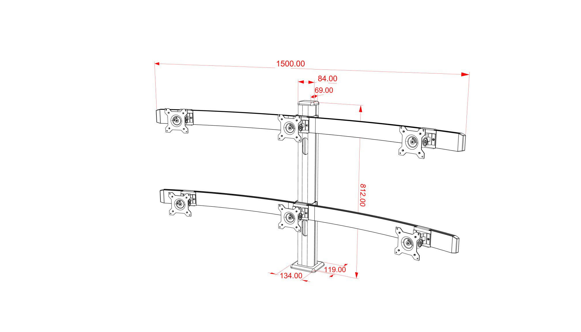 NewSence DT600 夾枱式六屏 Hex Monitor Stand 顯示器支架