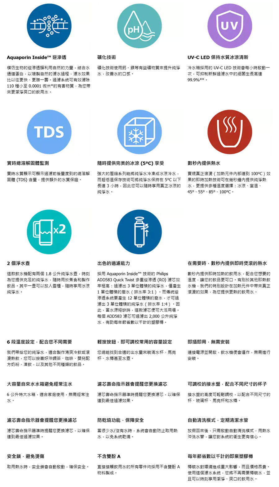 您將驚嘆於這款 RO 過濾飲水機的壓縮冷卻系統及能實現真正滾燙的即時加熱技術。除了可以選擇各種溫度,這款飲水機亦採用容易清潔的細節。最適合家庭使用!