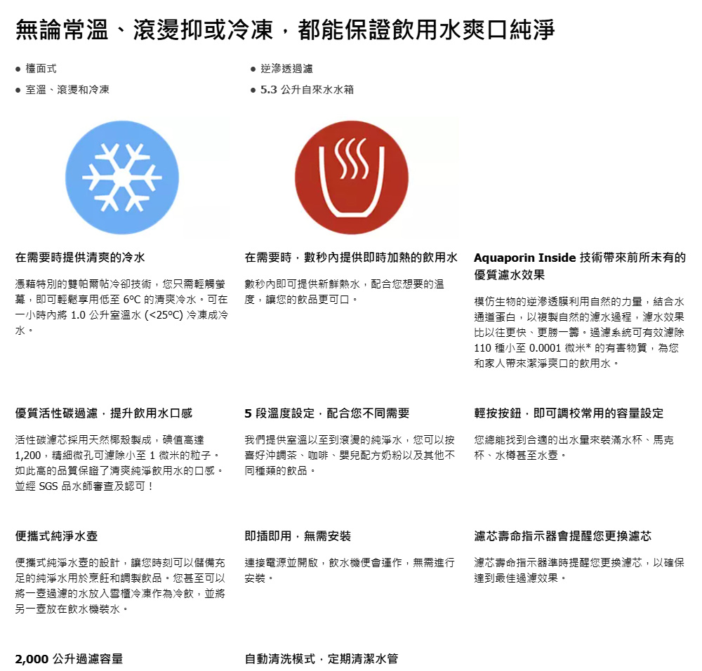 無論常溫、滾燙抑或冷凍,都能保證飲用水爽口純淨