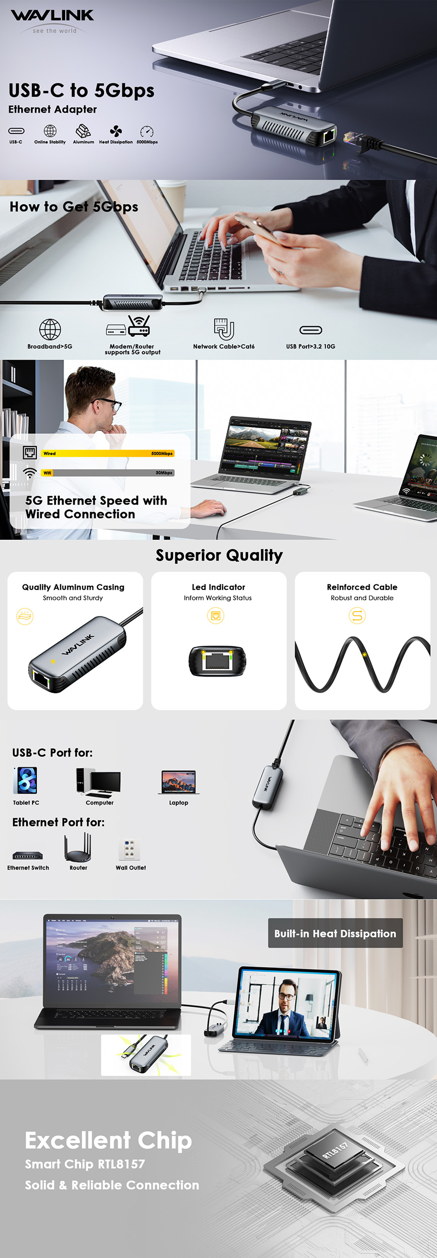 Wavlink USB-C to 5 Gigabit Ethernet Adapter (WL-NWU340G)