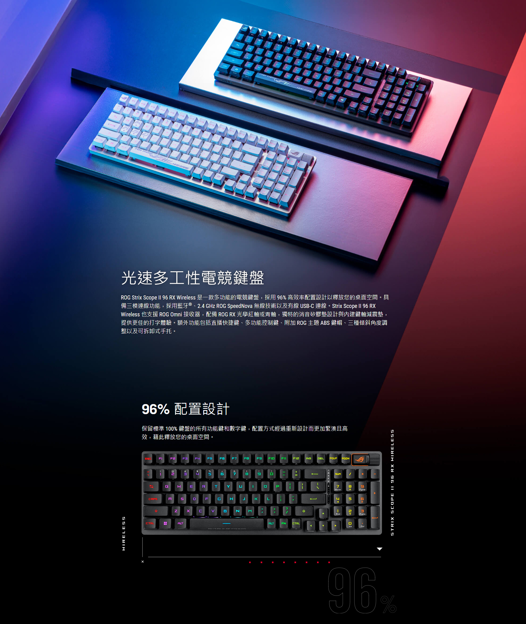 ASUS ROG Strix Scope II 96 RX Wireless 無線光軸電競鍵盤(紅軸-黑色)
