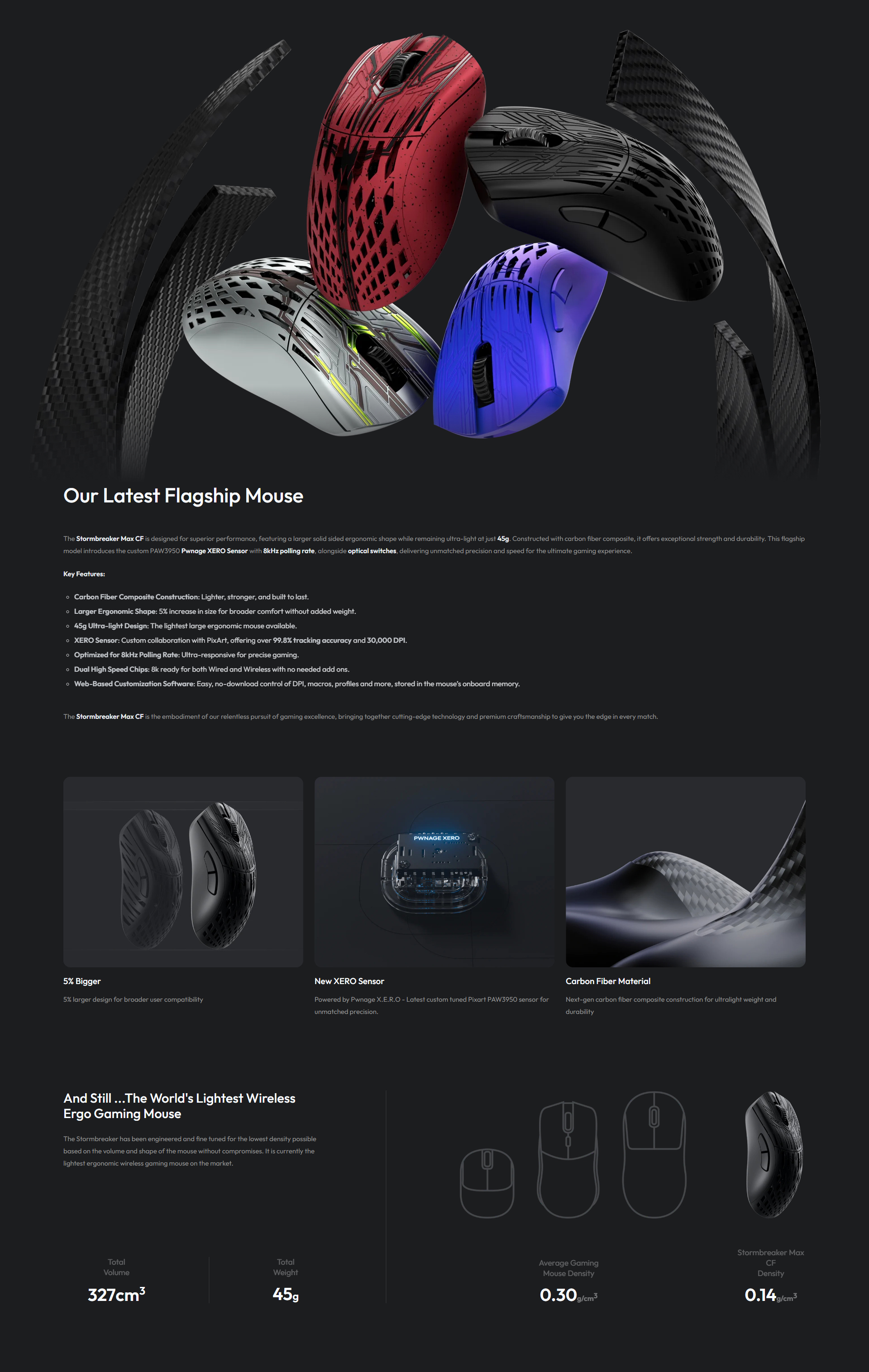 - XERO Sensor: Custom collaboration with PixArt, offering over 99.8% tracking accuracy and 30,000 DPI.