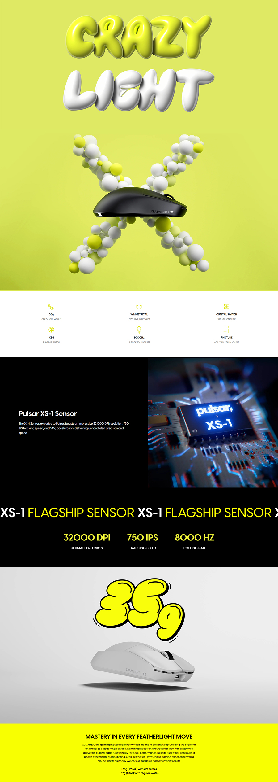 - 超輕重量僅 35 公克,可降低手部疲勞並提升速度。