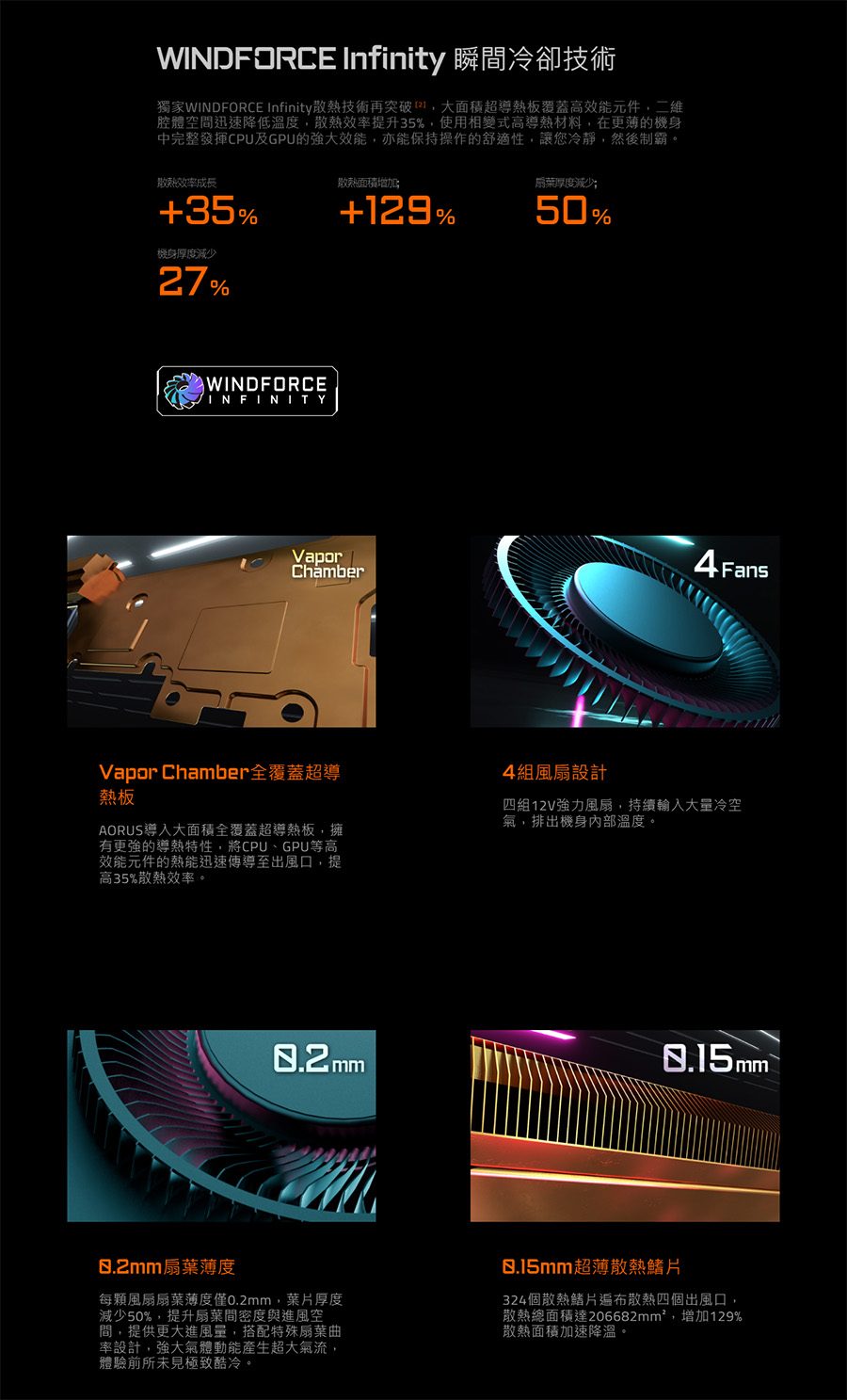 得益於Windforce Infinity 強大的散熱技術,使機身達到不可思議的極致輕薄,以壓倒性效能制霸宇宙。