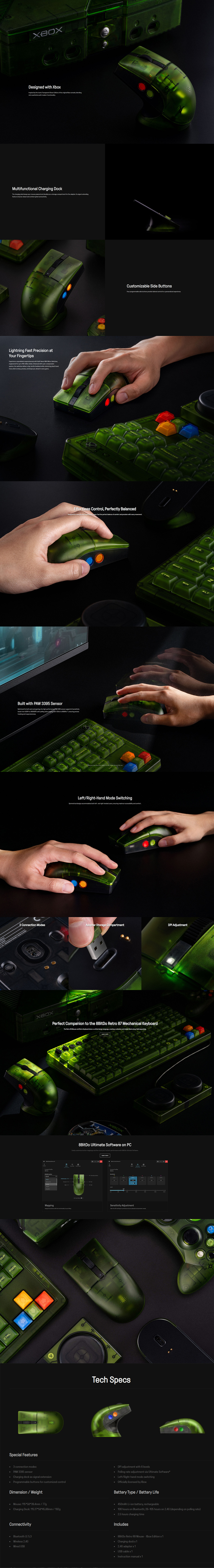 - 3 種連線模式 - 藍牙、2.4G 無線或有線的 USB-C 提供彈性連線。