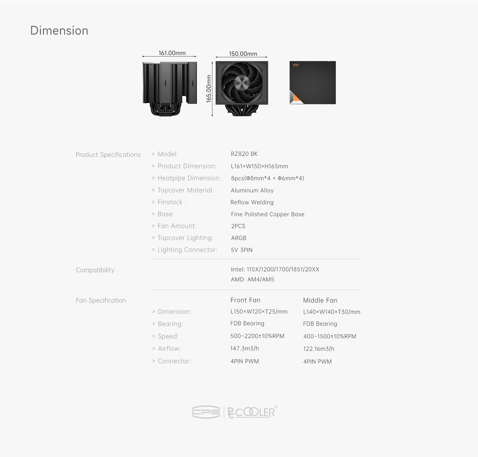 PCCOOLER RZ820 風冷散熱器(黑色)