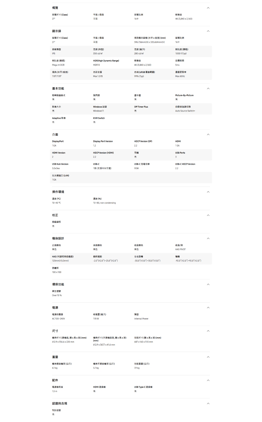 Samsung 三星 ViewFinity S8 27吋 4K UHD 60Hz IPS 顯示器