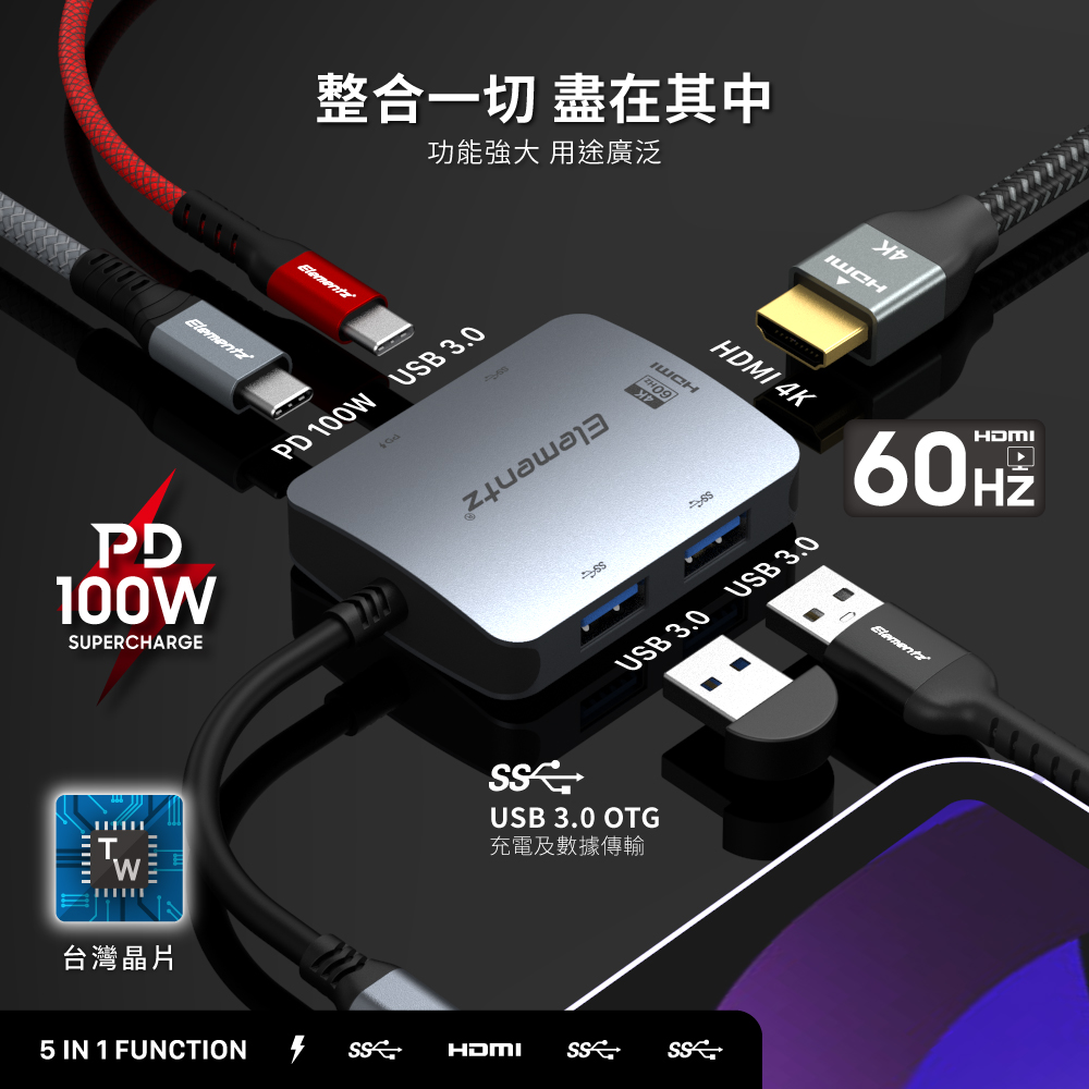 Elementz 5 in 1 Type-C Hub 擴展器(MU-560-PRO)