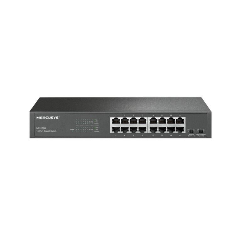- 全 Gigabit 連接埠: 16× 10/100/1000 Mbps自動協商 RJ45 連接埠支援 Auto-MDI/MDIX