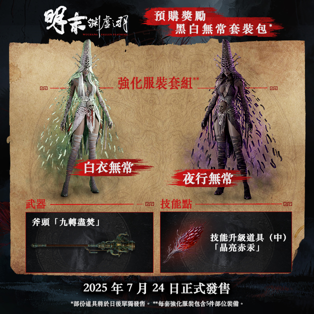 玩家化身為無常,一位失憶的女俠,在遭受可怕的羽化症折磨的同時探索自己飄渺的過去。探索蜀地黑暗深處,打倒敵人以獲得新技能並強化武器裝備。奉獻稀有的赤汞來強化你的戰鬥能力,並進一步開發在緊張刺激的旅程中獲得的新技能,用強大的附魔強化與琳瑯滿目的武器,實現適合你個人風格的獨特戰鬥方法和策略。