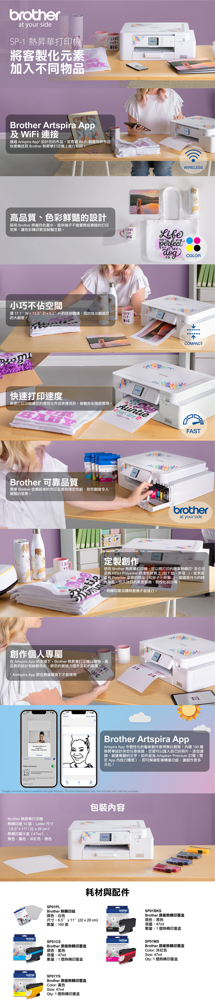 點燃您的創業精神,使用 SP-1 打印機。設計上具備創意的多樣性,配備昇華紙,使您能輕鬆將設計轉印到純白的聚酯T恤或陶瓷杯上。SP1確保您的創作在美學上脫穎而出。