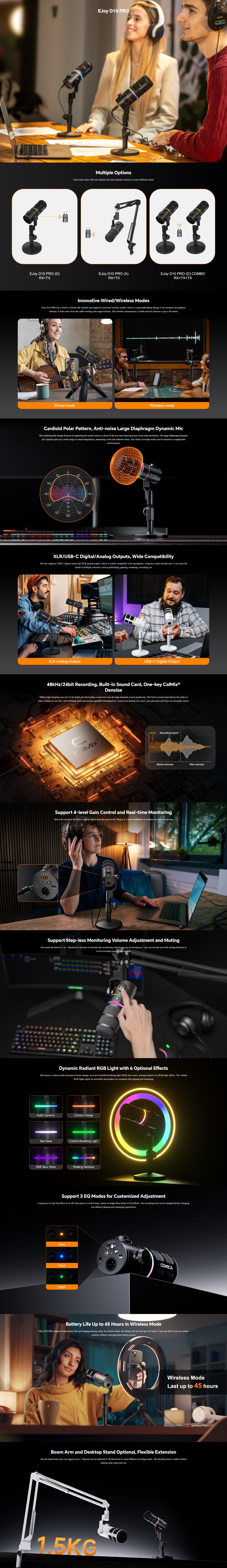 - Boom Arm and Desktop Stand Optional, Flexible Extension