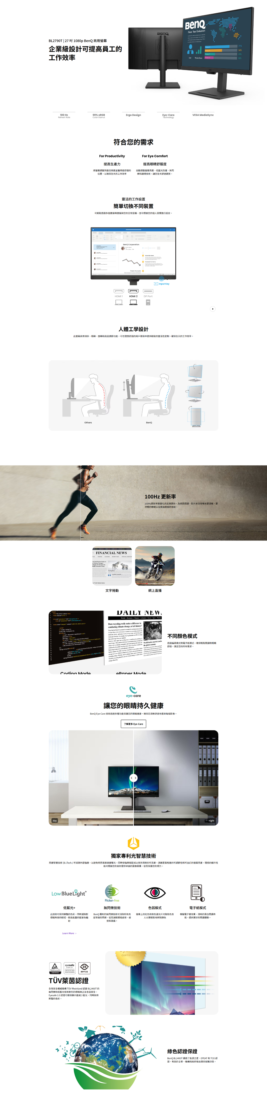 - 100Hz刷新率與護眼技術