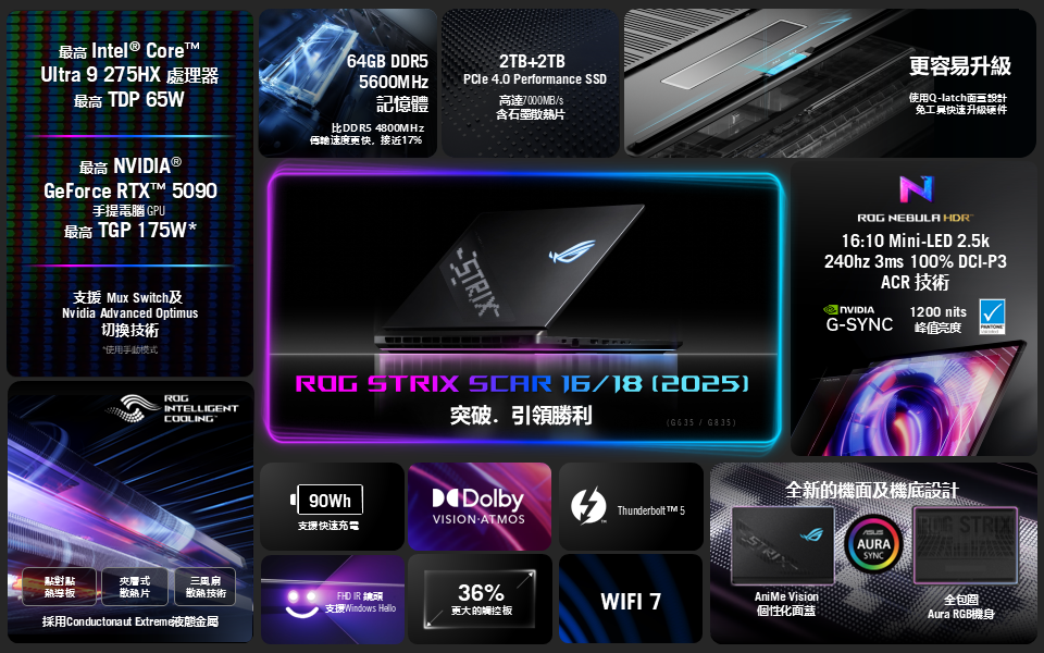 Intel® Core™ Ultra 9 處理器 275HX 2.7 GHz (36MB 快取, 最高 5.4 GHz, 24 核心, 24 執行緒); Intel® AI Boost NPU up to 13TOPS
