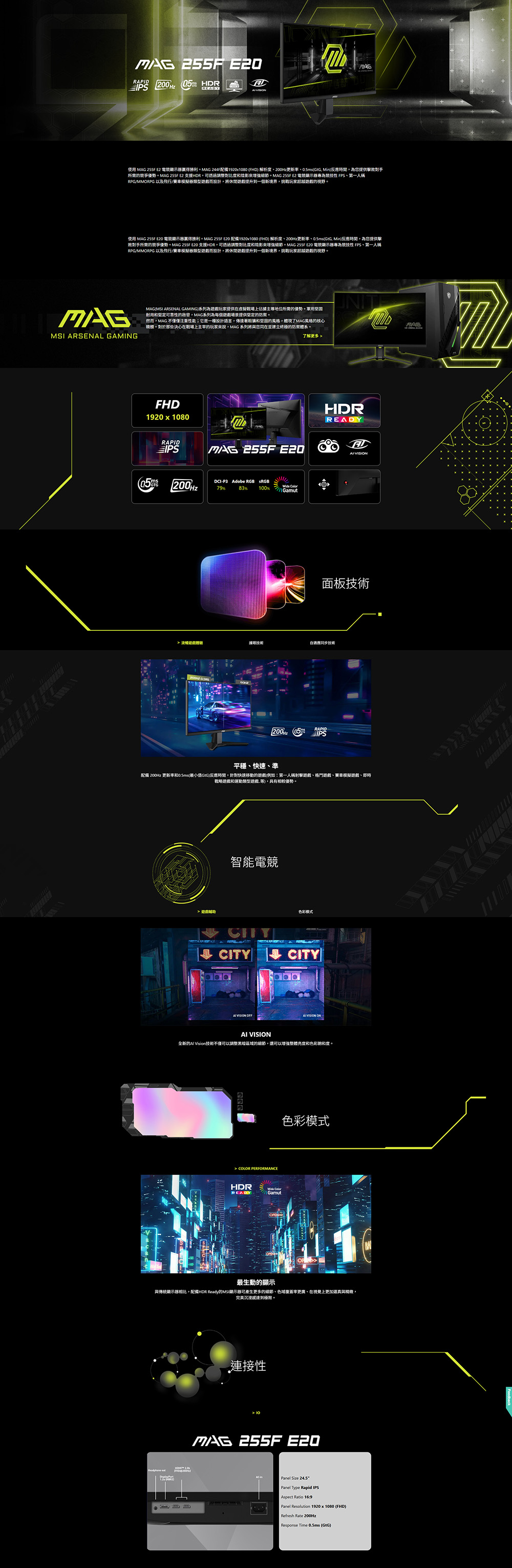 - Rapid IPS 面板-提供 0.5ms(GtG,最小值)快速反應時間,優化螢幕顏色和亮度