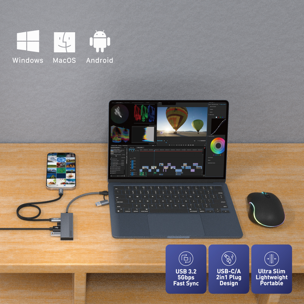 - USB-A 3.2 OTG 5Gbps Max. 高速傳輸速度 適合文件過資料