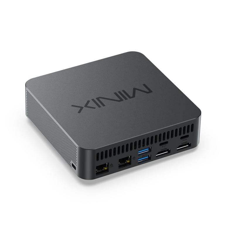 Measuring just 119.9mm x 119.9mm x 37.9mm and weighing approximately 460g, the MINIX N512 Mini PC fits virtually anywhere. The metal-plastic hybrid enclosure enhances durability while maintaining a sleek, professional look suitable for any workspace.