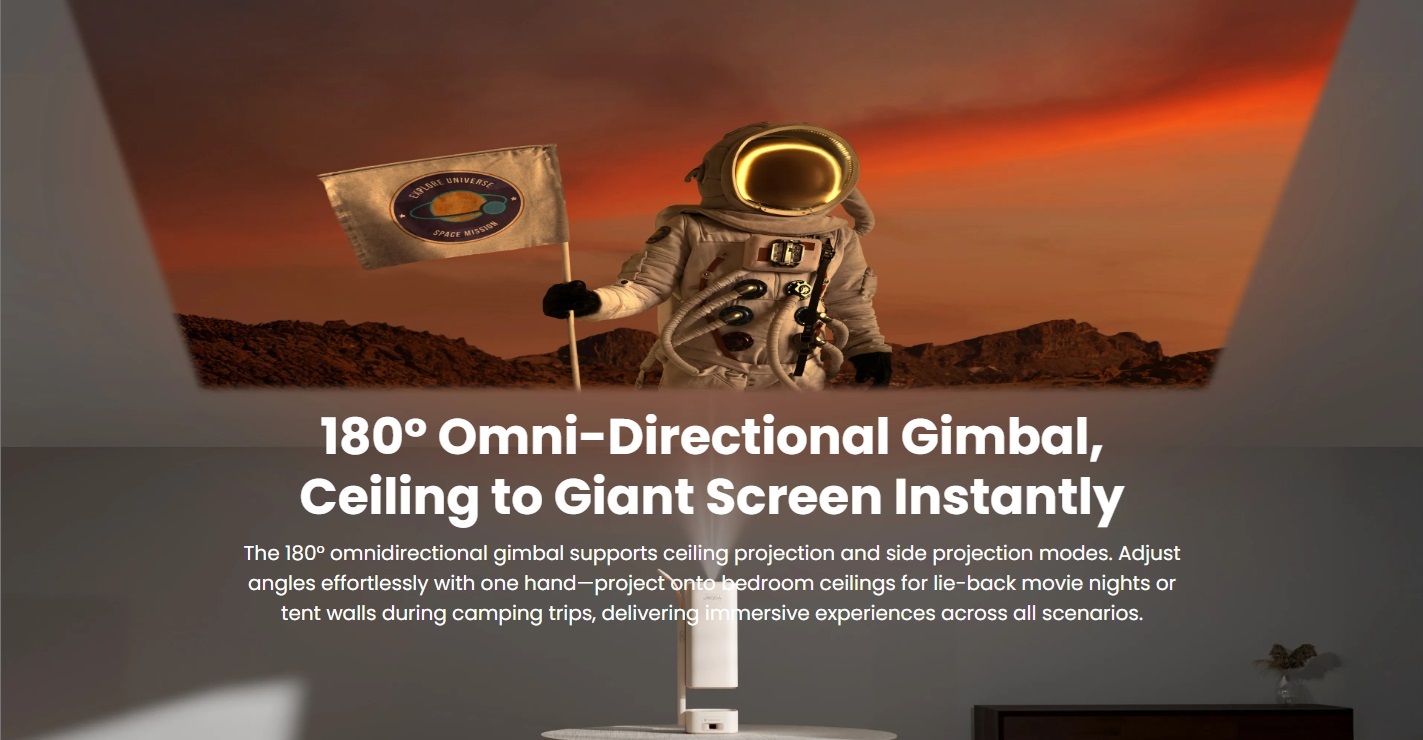 • 萬向雲台支架,支援 180° 旋轉,投影角度自由調整