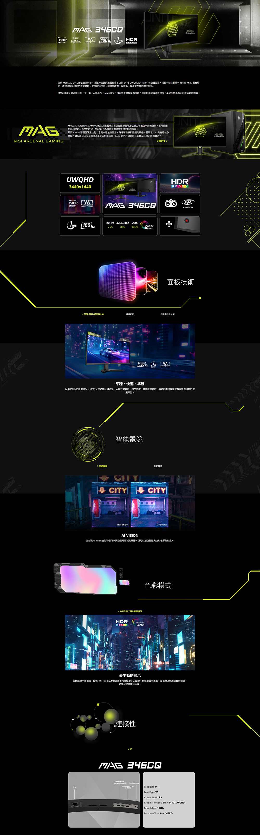 MAG 346CQ 專為競技型 FPS、第一人稱 RPG、MMORPG、飛行與賽車模擬而打造,帶給玩家突破視野極限,享受前所未有的沉浸式遊戲體驗!