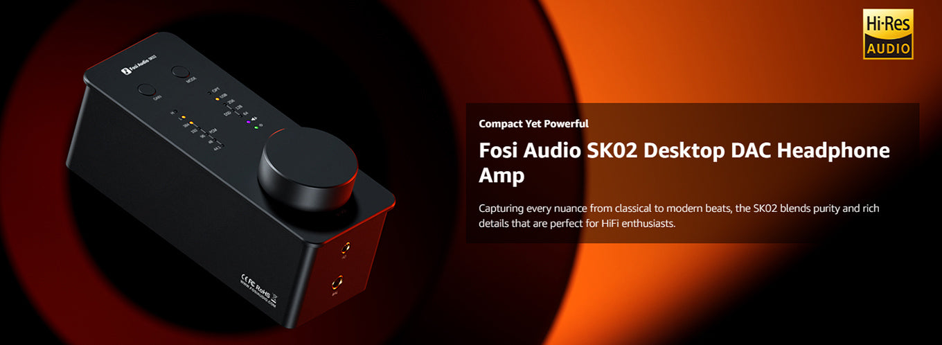 Fosi Audio SK02 是一款專為音響發燒友設計的高性能桌面數位類比轉換器(DAC)與耳機放大器,結合小巧外型與強大功能,支援高解析度音訊解碼與多功能操作,適合家庭音響系統、桌面聆聽及專業應用。以下為其主要特色: