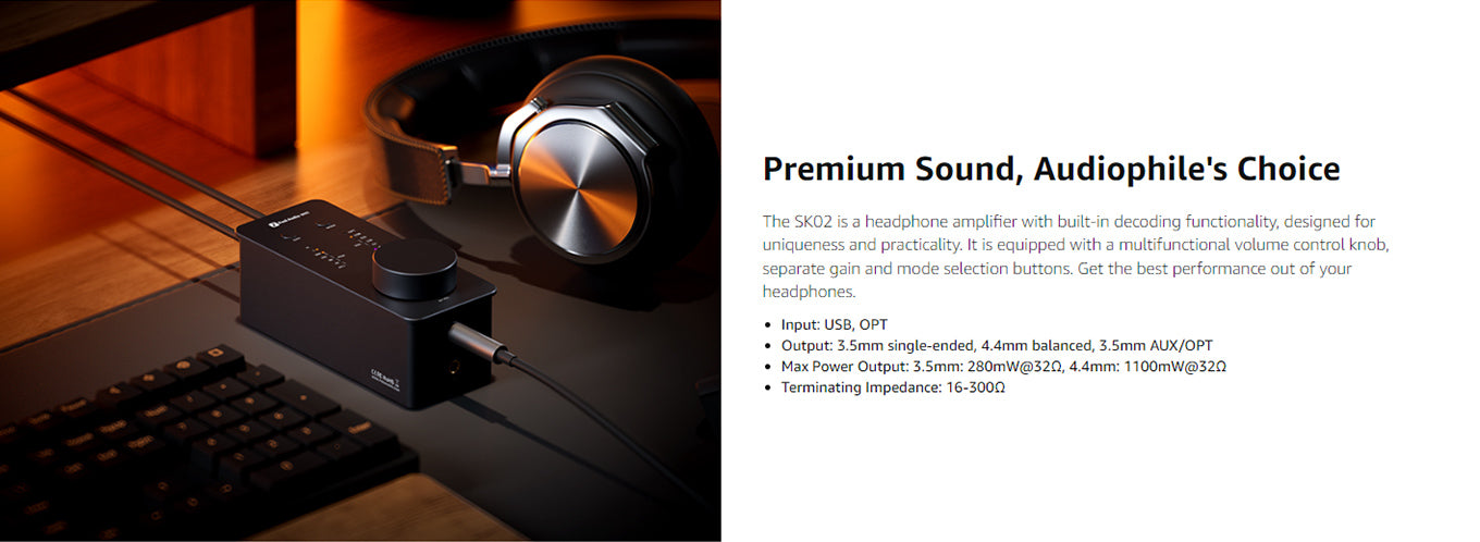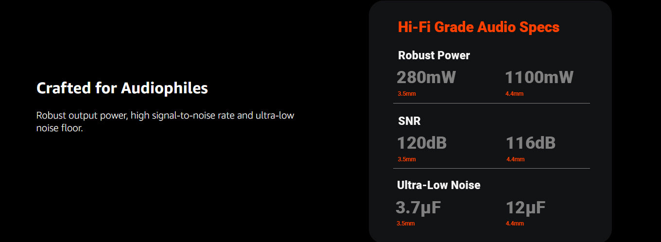 - 配備 SGM8262 運算放大器,提供強勁輸出功率,支援 16-300Ω 阻抗的耳機與入耳式監聽耳機(IEM)。