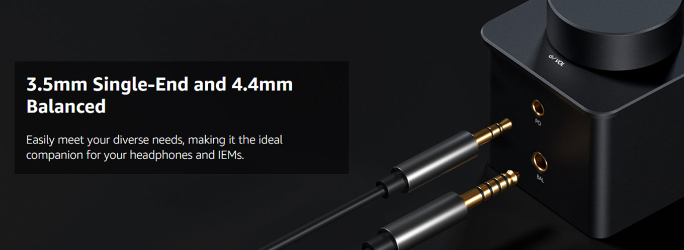 - 輸出:3.5mm 單端耳機輸出、4.4mm 平衡耳機輸出、3.5mm 線路/光纖輸出(USB-C 輸入使用 3.5mm 線路輸出,光纖輸入使用 mini-Toslink 輸出),可作為前置放大器連接主動式揚聲器或放大器(如 Fosi Audio V3、ZA3、TB10D)。