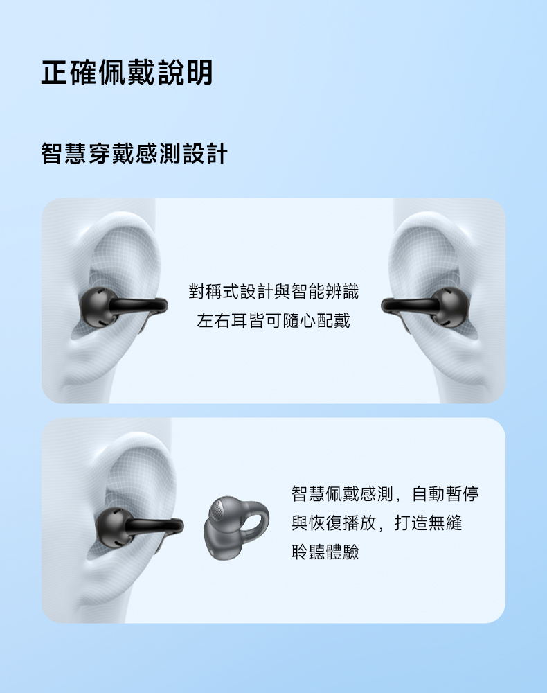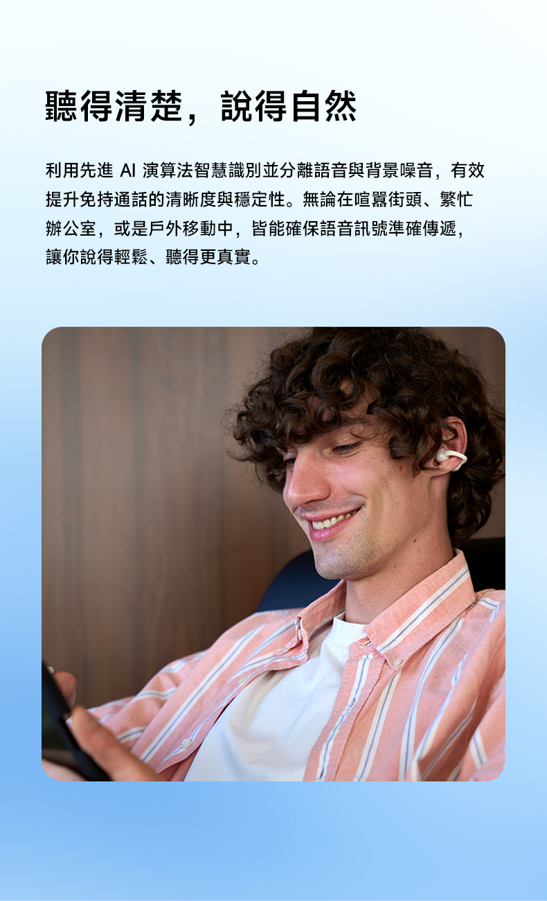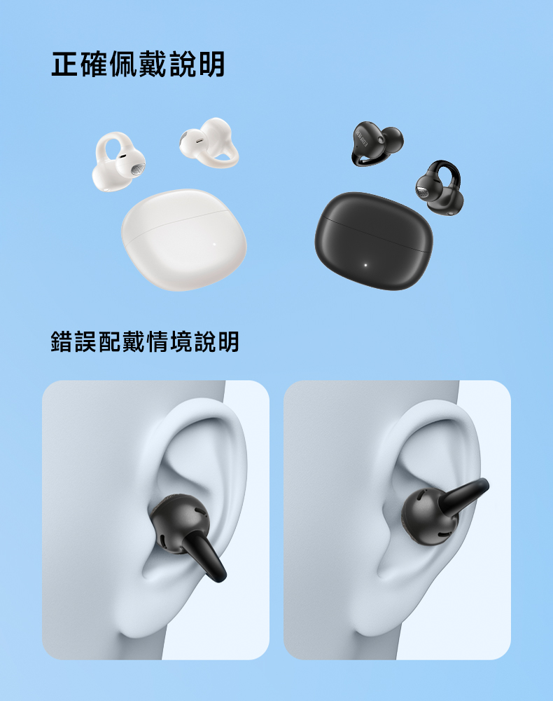 • 多曲率耳掛結構,依耳型自然貼合,久戴依然舒適