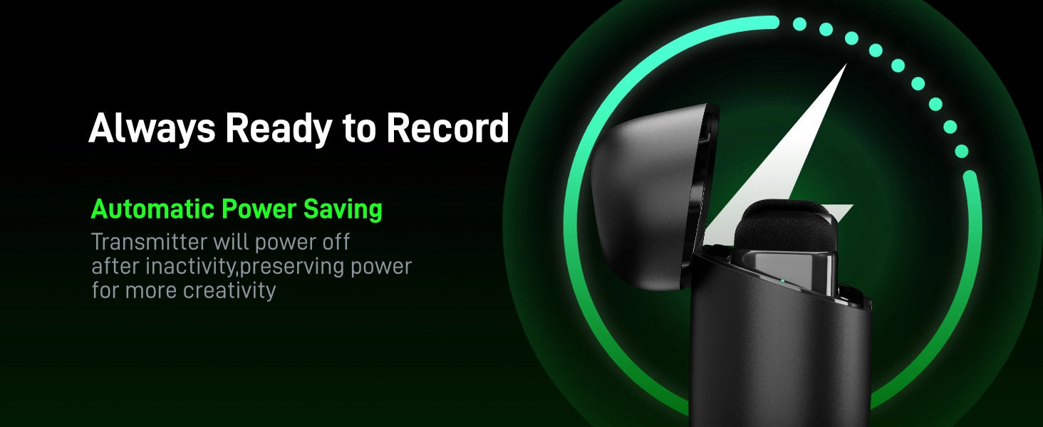 • 長達 30 小時電池續航:配備小巧充電盒,麥克風可使用長達 30 小時。接收器支援邊錄邊充電,無需擔心電量不足。