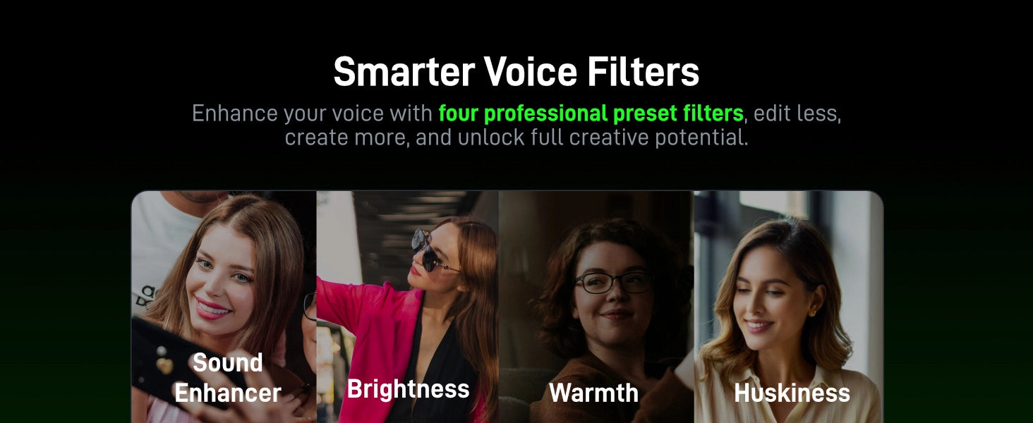 • AI 語音濾波與效果:透過 Maono Link 應用程式,可切換 4 種獨特語音濾波和 4 種語音變化效果,實時調整降噪等級和音量增益,打造個性化錄音體驗。