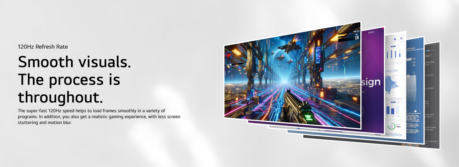 | Refresh Rate | 120Hz – smoother motion than standard 60Hz displays |