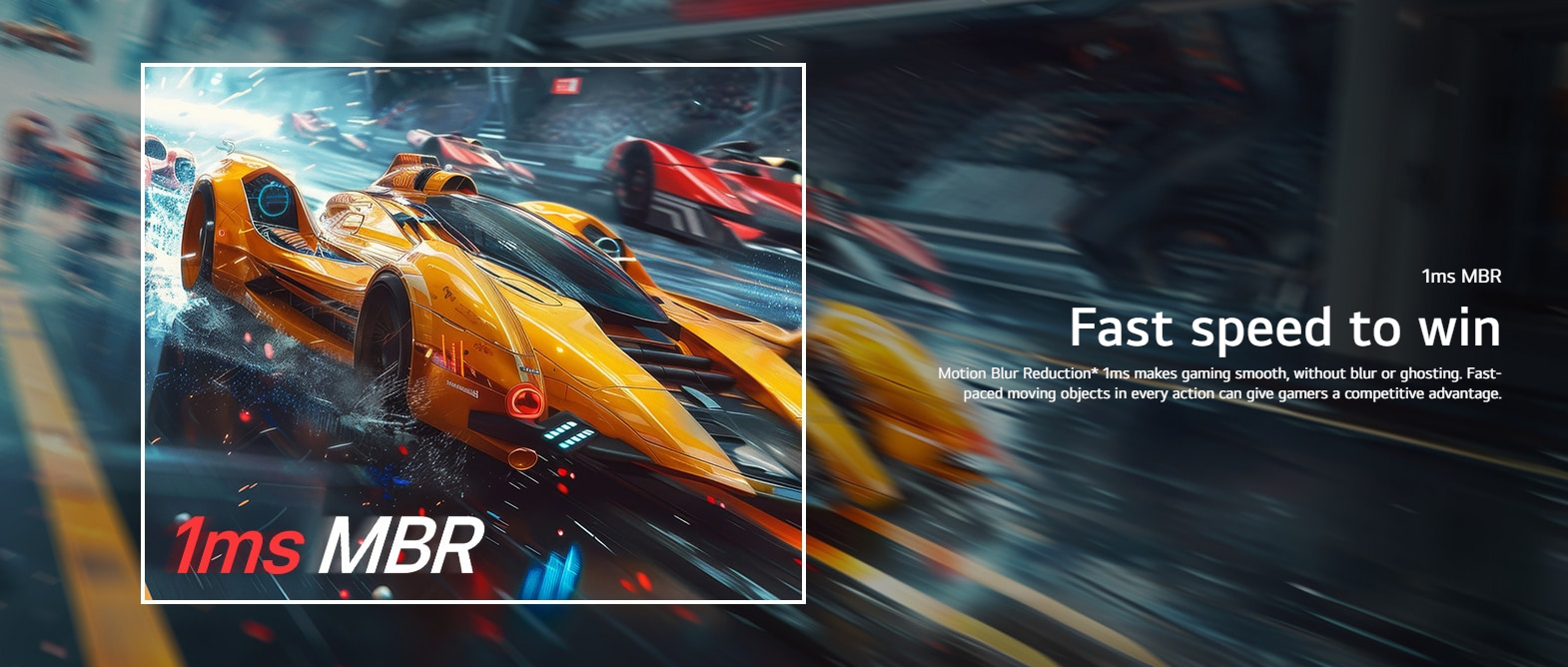 Motion Blur Reduction* 1ms makes gaming smooth, without blur or ghosting. Fast-paced moving objects in every action can give gamers a competitive advantage.