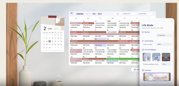 The LG Switch app helps you optimize your screen for work and life. You can easily split the entire screen into 6 sections, change the theme design, or even launch the video calling platform using mapped keyboard shortcuts.