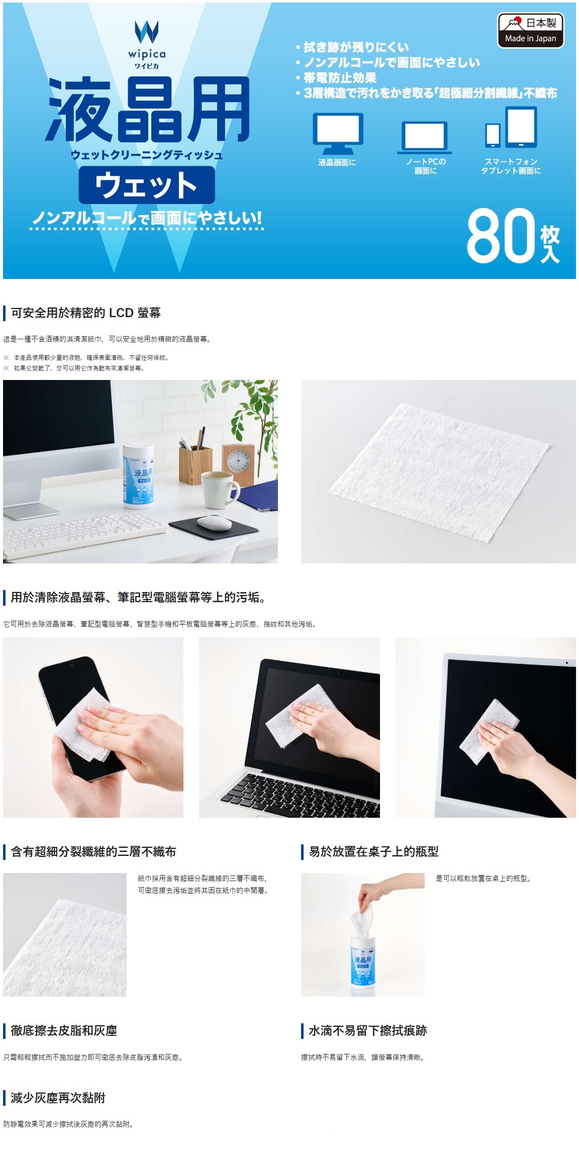 ELECOM-無酒精液晶螢幕濕清潔 清潔擦拭巾 v4-80枚 (日本製)