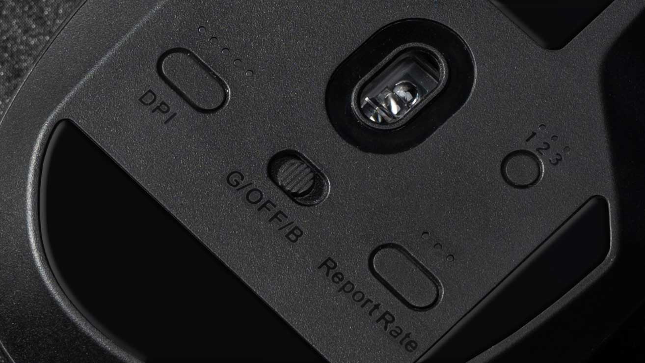 Press the Report Rate button to switch among 3 levels of polling rate from 125 Hz to 1000 Hz in the 2.4 GHz / Wired mode.