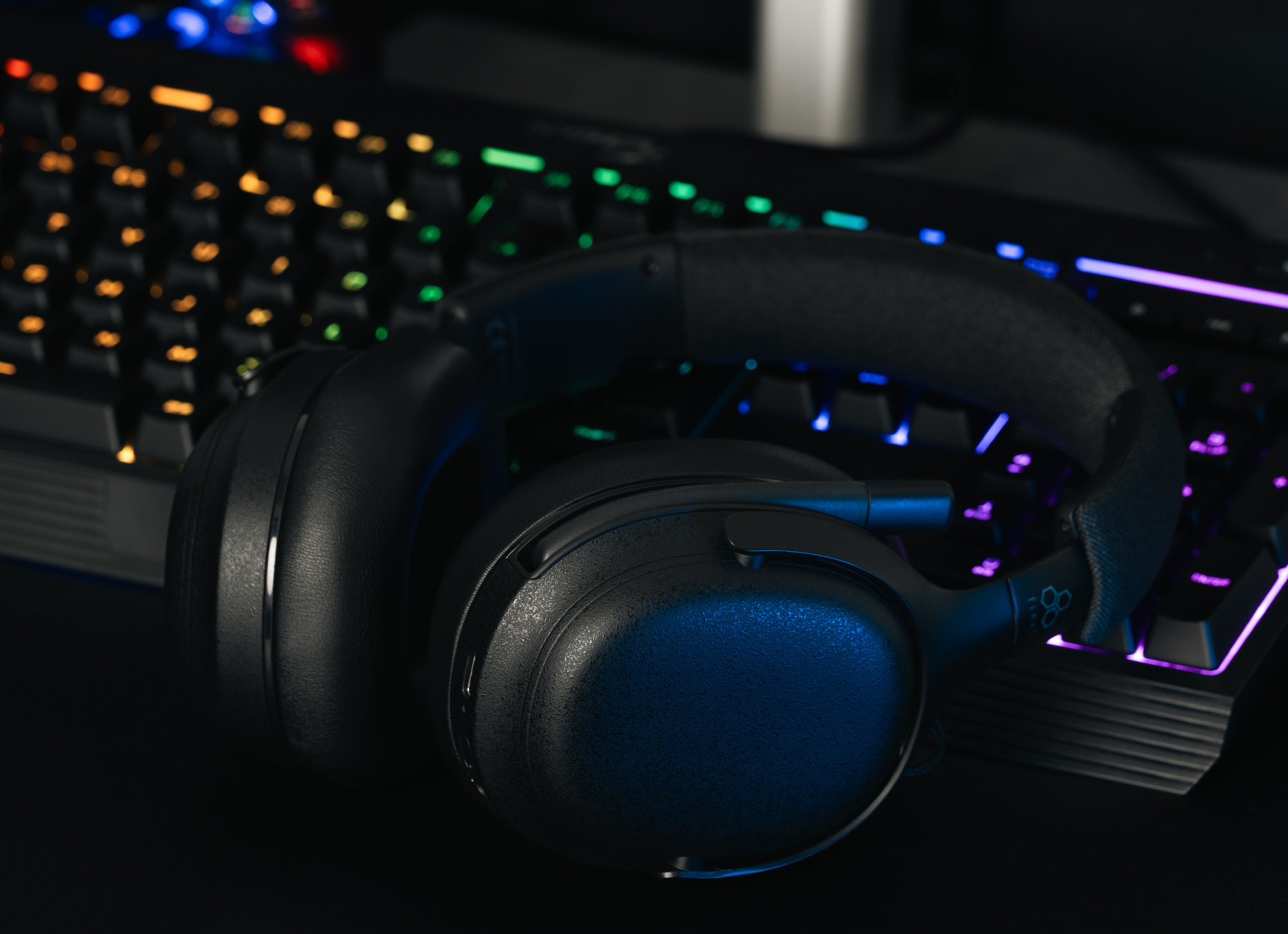 長時間遊戲中,佩戴舒適度影響表現。本產品透過反覆試作,實現絕佳側壓與重量平衡,大幅減輕頭頂壓力。採用多角度調整的耳罩設計,適配不同頭型,建議將耳罩略向後傾斜,減少音漏並提升舒適度。頭帶使用透氣網狀材質,確保長時間使用不悶熱,保持舒適。