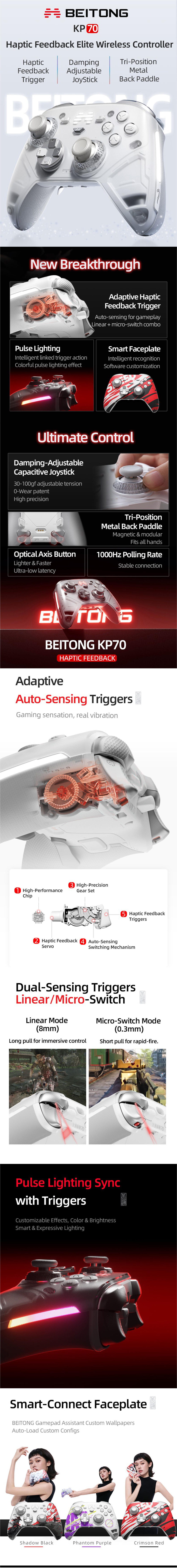 - 專利觸覺回饋系統,具備 14+ 種場景特定效果(賽車、射擊、弓箭、劍等)。