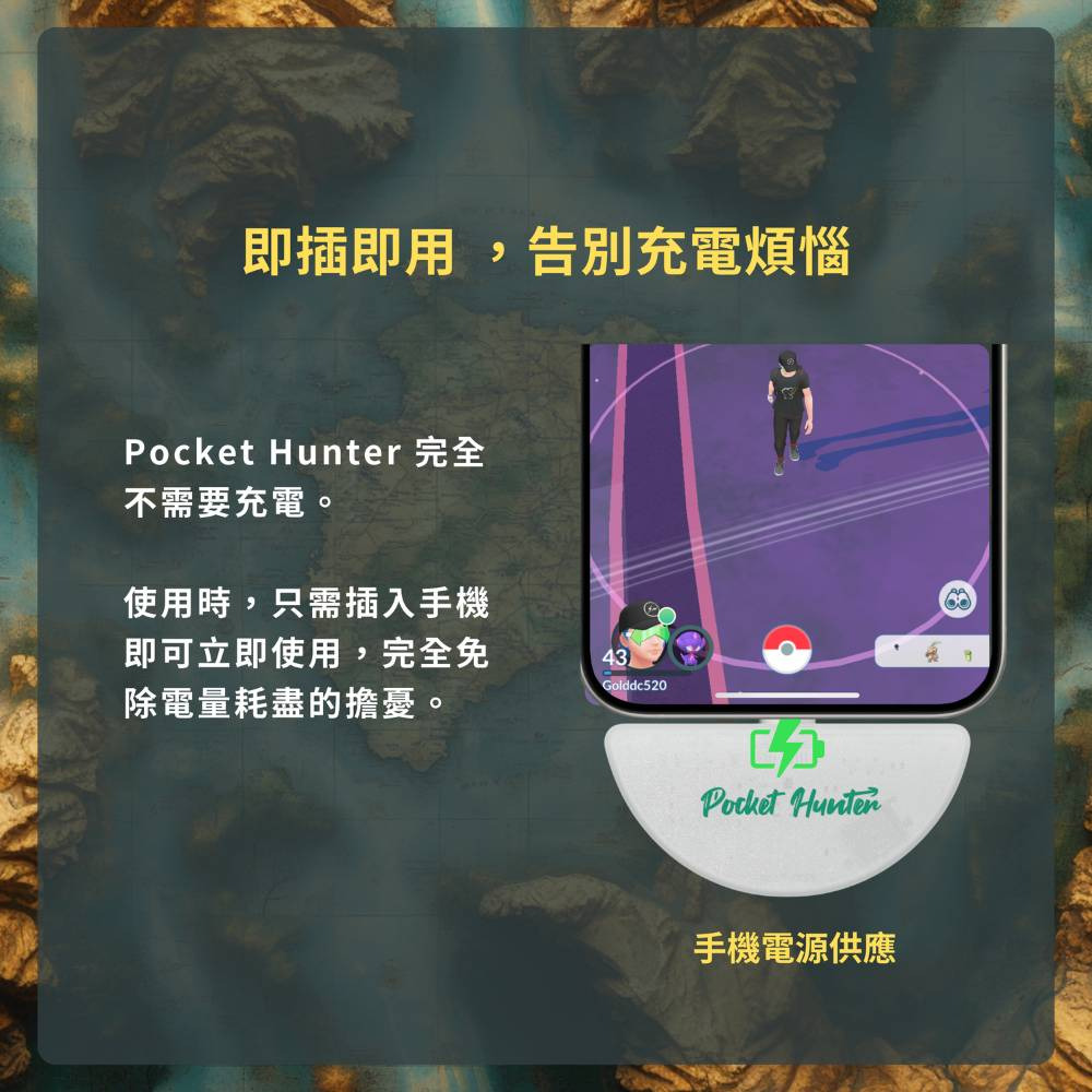 ※承上,如您是Lightning接孔(iPhone14以前),亦可接上行動電源(需支援弱電流)/充電頭為Pocket Hunter供電使用