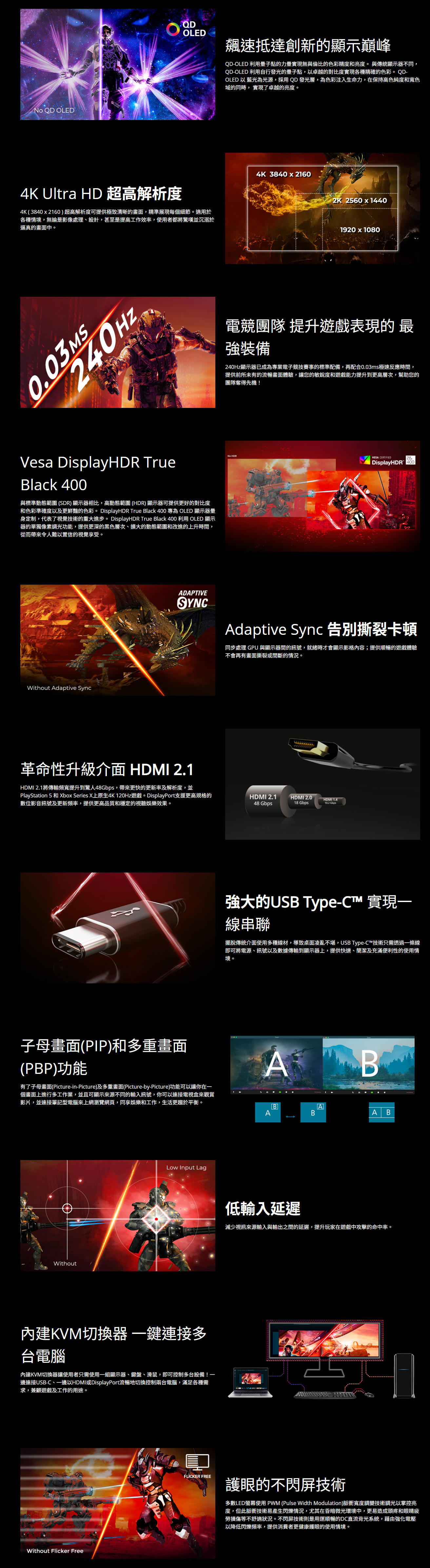 同時,Flicker Free 無頻閃及 Anti-Blue Light 抗藍光技術可有效保護視力,更設有 OLED Care 功能,延長屏幕壽命。