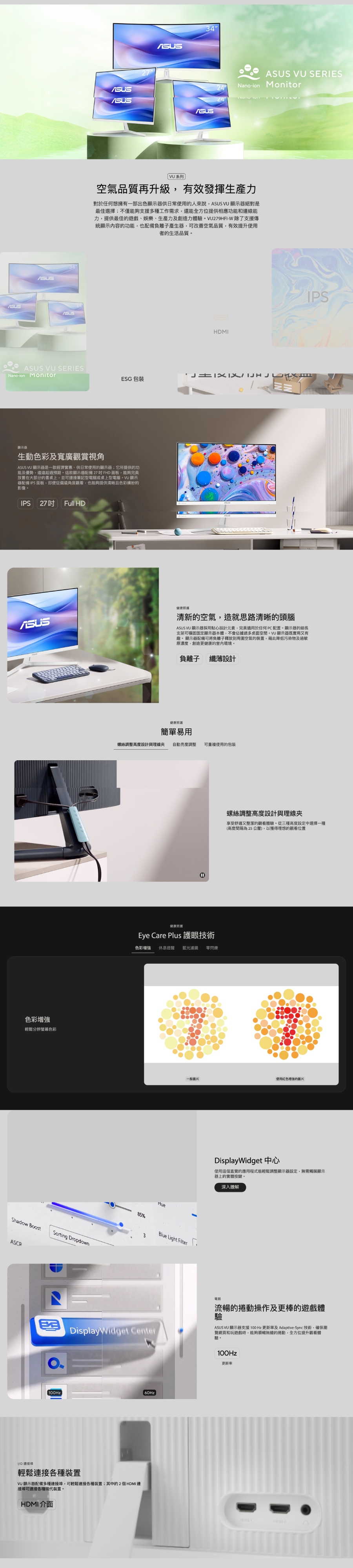 - 配備 27 吋 Full HD IPS 面板,支援 100Hz 更新率,提供流暢的影片觀賞及休閒遊戲體驗。