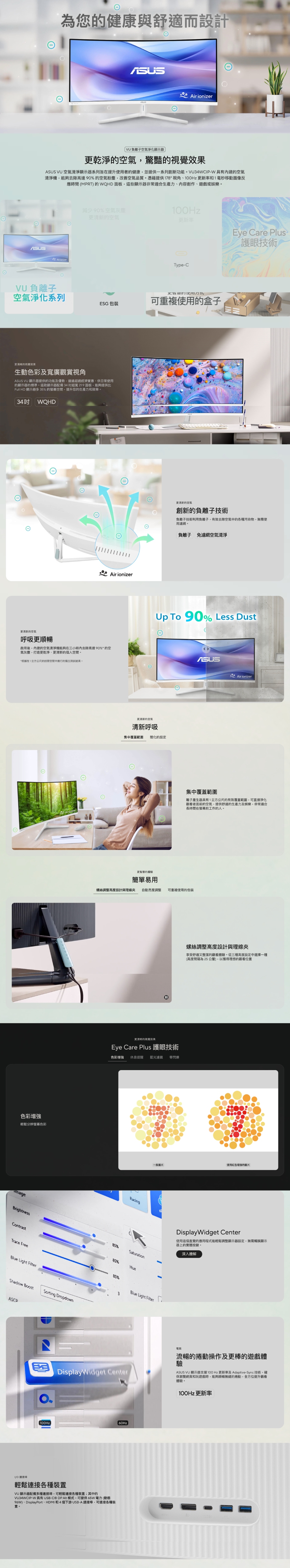 - 採用 SmootMotion 技術以提供最高 100Hz 更新率和 1 毫秒 MPRT,可消除殘影並確保清晰銳利的影片播放效果及日常使用