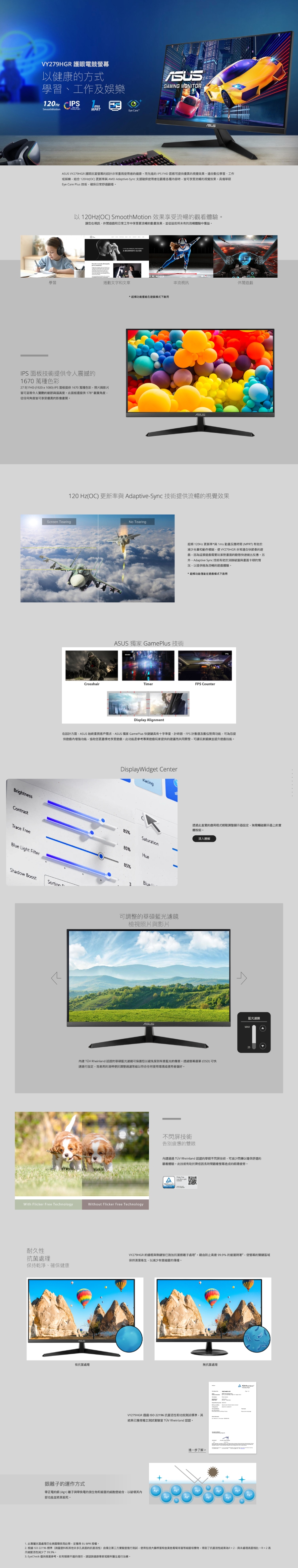 - 27 吋 FHD IPS 面板具備 120Hz(超頻) 更新率以提供流暢的影片觀賞與輕鬆的遊戲體驗。